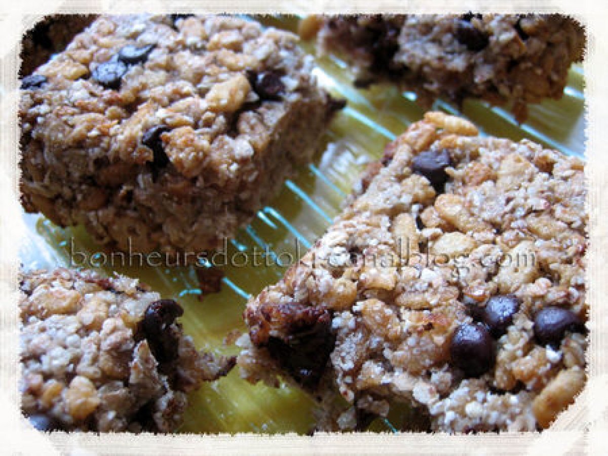 Carrés de muesli chocolat-banane Autremoyen45 min417 Kcal Envoyer cette recette à un ami Imprimer cette page Poser une question à l'auteur Publier votre photo de cette recette Ingrédients 4 160 g de flocons de sarrasin bio 100 g de Rice Krispies ou de riz soufflé 1 grosse banane mûre écrasée 1 blanc d'oeuf 80 g de sirop d'érable 80 g de pépites de chocolat Coût estimé: 2.1Euros€ (0.53€/part)
