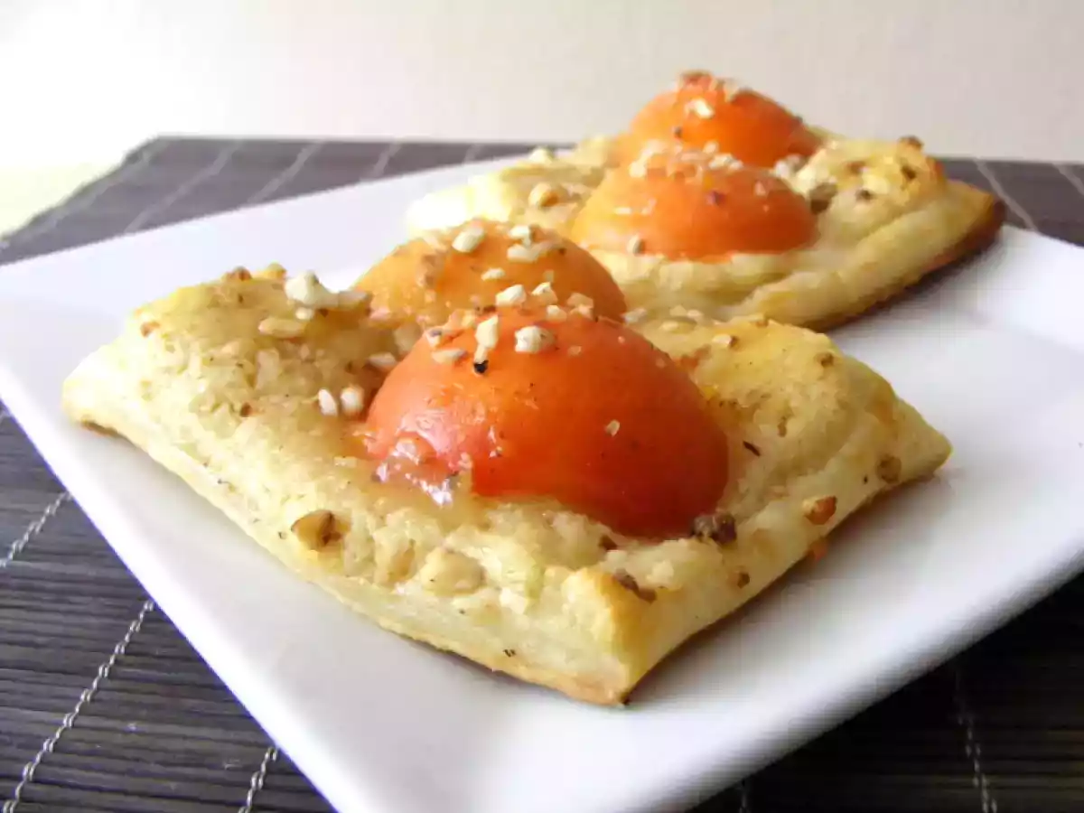 Carrés feuilletés aux abricots et amandes Autrefacile40 min Envoyer cette recette à un ami Imprimer cette page Poser une question à l'auteur Publier votre photo de cette recette Ingrédients 3 250 g environ de pâte feuilletée maison (ou du commerce) 1 oeuf 100 g de poudre d'amandes 50 g de crème liquide (allégée possible) (à la place du beurre) 50 à 70 g de sucre (selon vos goûts) 4 à 5 abricots Confiture d'abricots à la fleur d'oranger (ou autre, ou de la gelée) Pralin maison