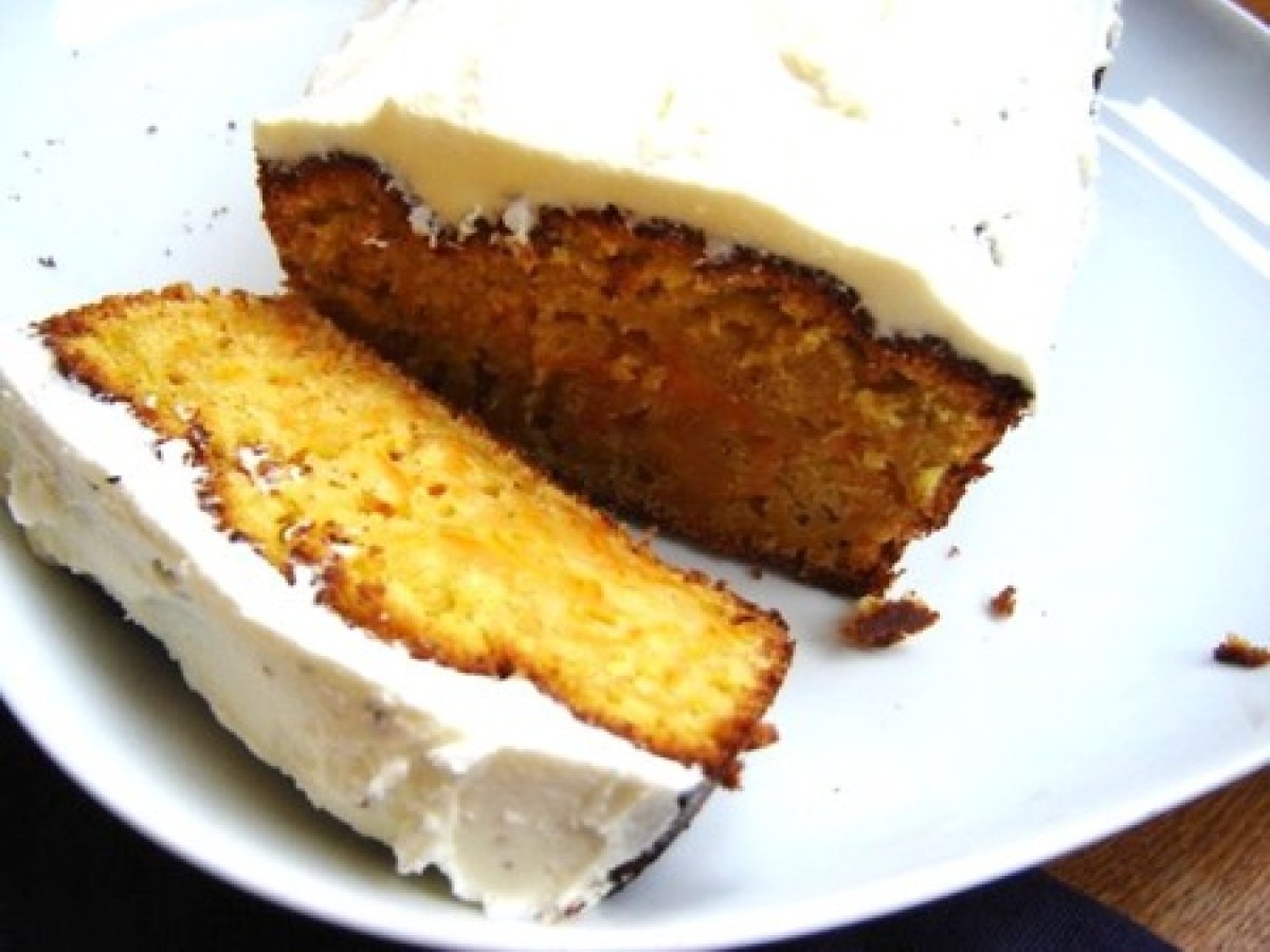 "carrot cake" léger à l'huile d'olive, glaçage au fromage frais...