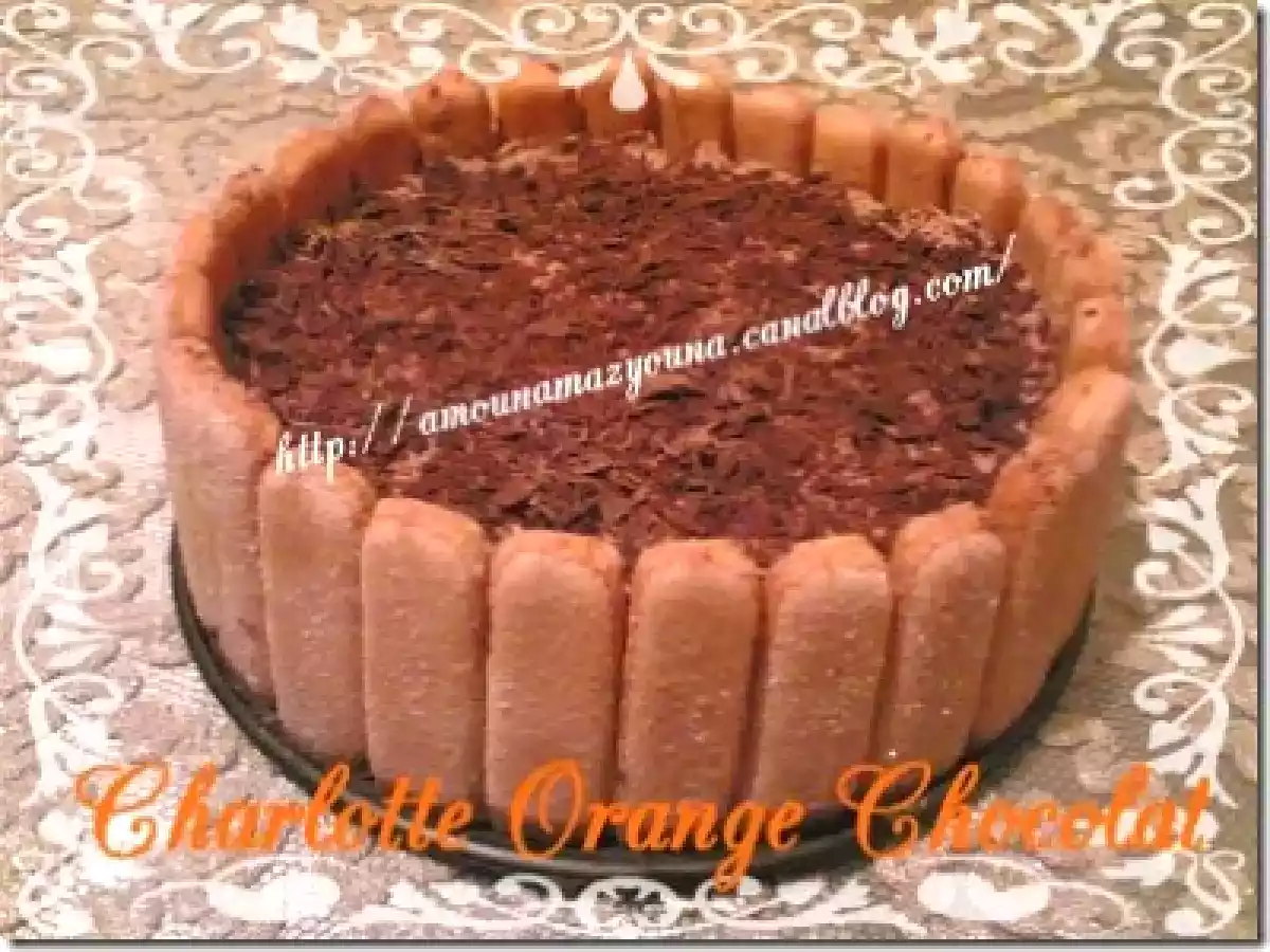Charlotte aux deux mousse : orange chocolat PrécédentSuivant Autremoyen55 min Envoyer cette recette à un ami Imprimer cette page Poser une question à l'auteur Publier votre photo de cette recette C'est une recette qui est extrêmement chocolaté, c'est super bon! Ingrédients 6 3 jaunes d’oeuf 125 g de sucre en poudre 25 cl de jus d'orange 30 g de maïzena le zeste râpé d'une orange et d'un citron 250 g de crème fraîche en chantilly 1 cuillère à soupe de sucre glace 1 cuillère à soupe de gélatine 3 cuillère à soupe d'eau 100 g chocolat noir 1 cuillère à soupe de beurre 1 cuillère à soupe nescafé