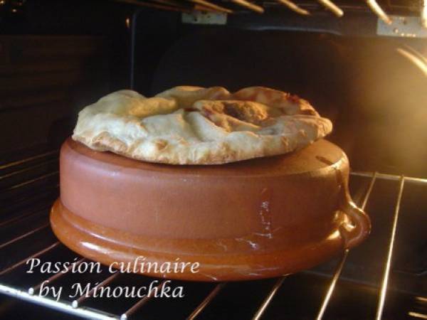 Placer ensuite le nan formé directement sur le tajine très chaud, réduire le four à 200° et laisser cuire 10 à 20 minutes selon la taille de votre nan. Badigeonner de ghee avant à la sortie du four. - Déguster chaud et le jour même de préférence sinon le fromage n'est plus coulant bien qu'il reste fondant.