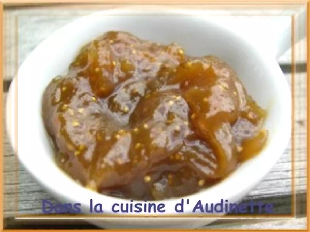 Chutney aux figues impériales PrécédentSuivant Autrefacile2 h 10 m Envoyer cette recette à un ami Imprimer cette page Poser une question à l'auteur Publier votre photo de cette recette Une douceur de délice. Ingrédients 4 1kg de figues fraîches bien mûres 3 oignons moyens 350g de cassonade 40cl de vinaigre de cidre 10 cl de vinaigre de framboises 1 pomme coupée en très petits dés 1 cuillère à café de muscade 1 cuillère à café de gingembre moulu 1 cuillère à café de massalé 1 cuillère à café de curry 1 pointe de piment de Cayenne 1 cuillère à café de sel fin 1/2 cuillère à café de poivre gris
