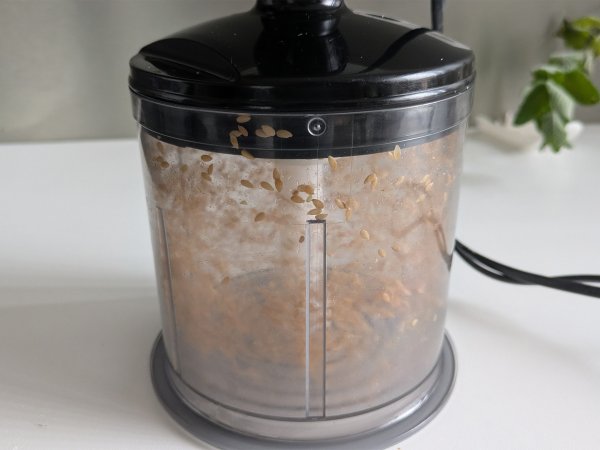 Les graines de lin entières ne sont pas bien absorbées par l’organisme. Il est préférable de les moudre pour profiter de leurs bienfaits nutritionnels et pour qu’elles puissent former un gel lorsqu’on les utilise en remplacement de l’œuf. On peut les moudre à l’avance et les conserver au frais.