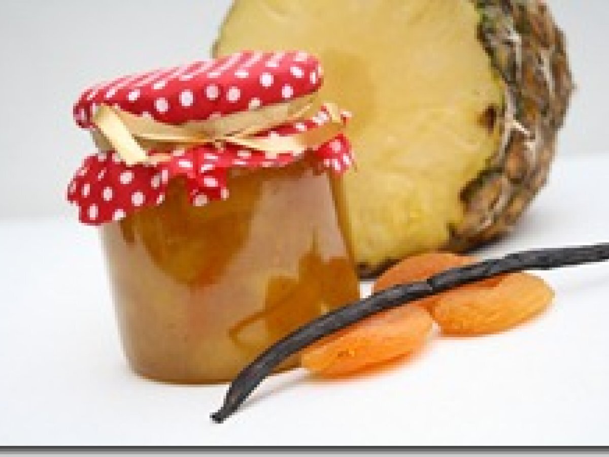 Confiture d'ananas à la vanille et abricots secs votez maintenant PrécédentSuivant Autremoyen45 min Envoyer cette recette à un ami Imprimer cette page Poser une question à l'auteur Publier votre photo de cette recette Ingrédients 12 2 ananas mûrs, sucre cristallisé, 2 citrons, 2 bâtons de vanille, 150 g d?abricot sec.