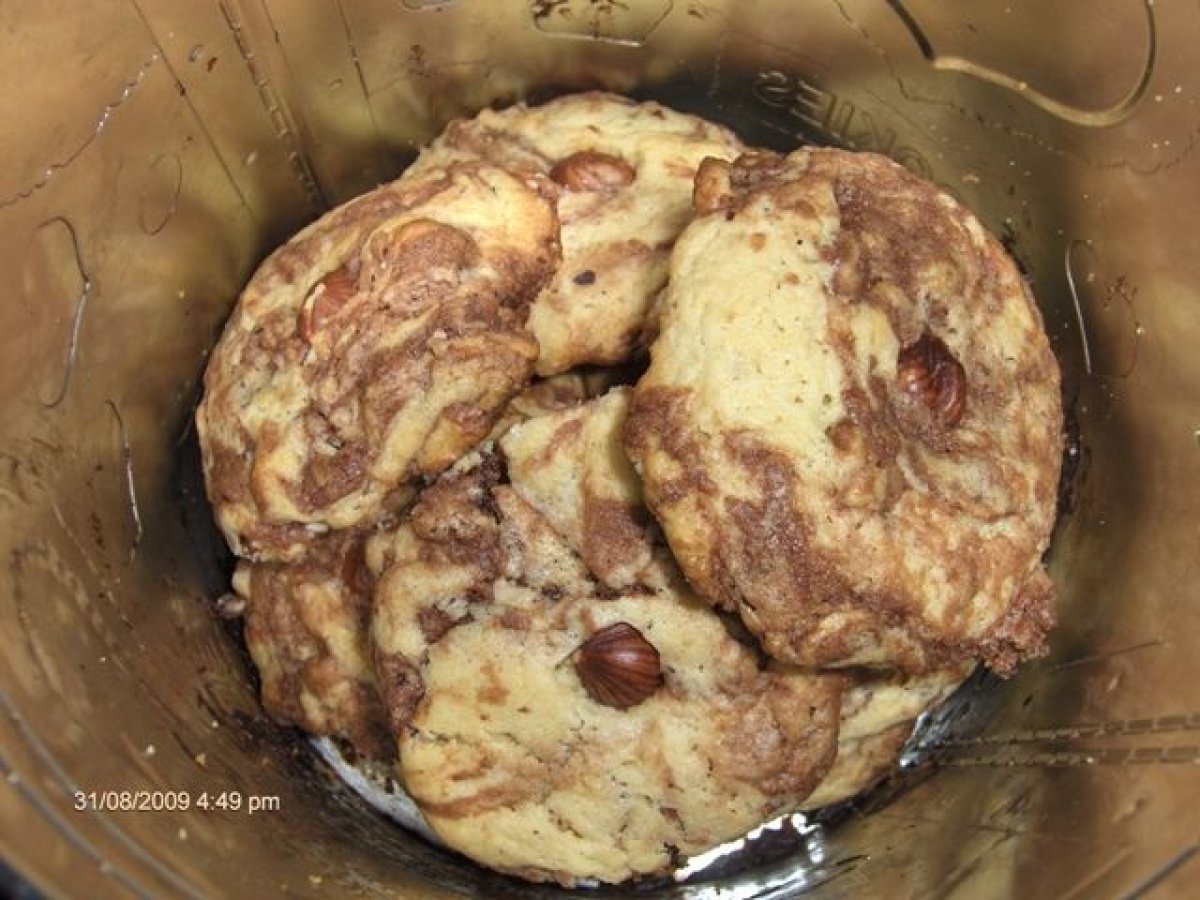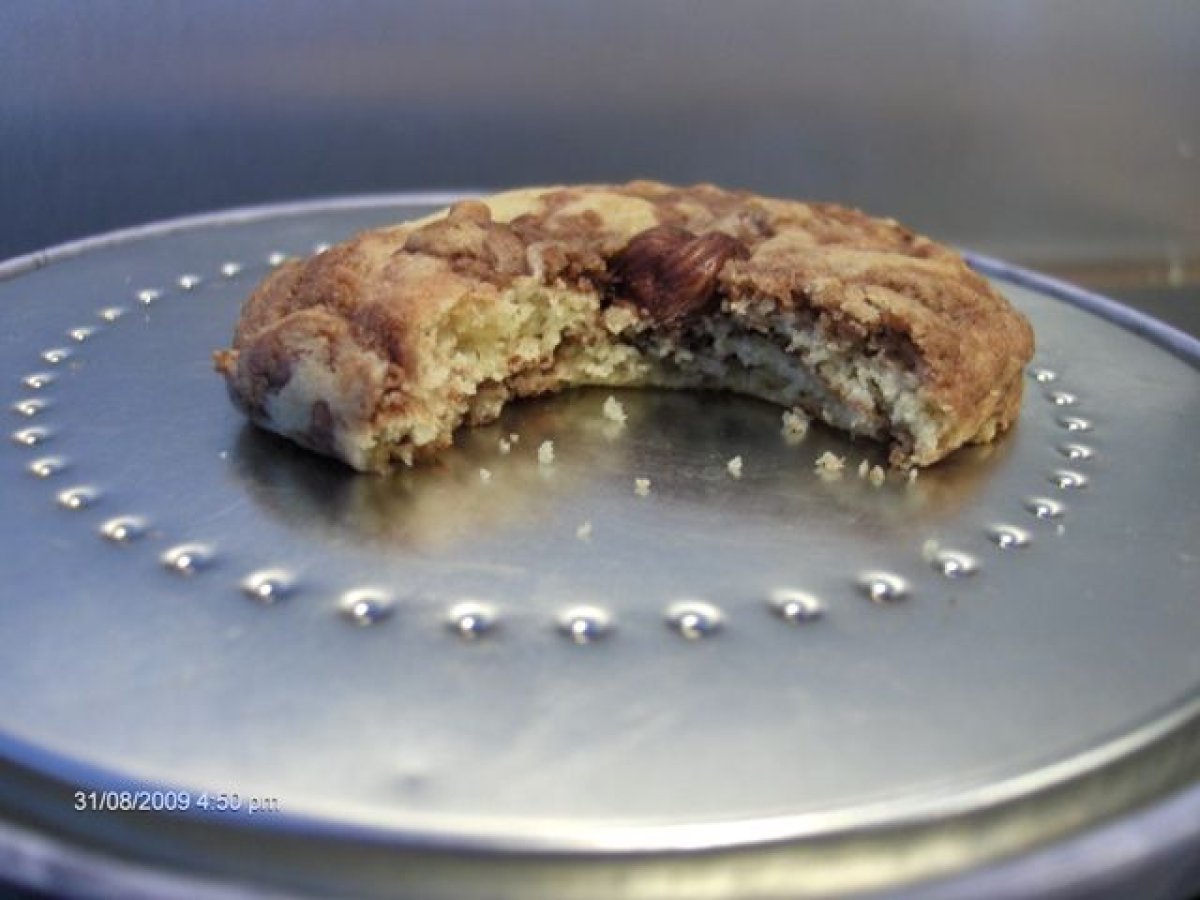 Cookies tourbillon au nutella votez maintenant PrécédentSuivant Autrefacile32 min683 Kcal Envoyer cette recette à un ami Imprimer cette page Poser une question à l'auteur Publier votre photo de cette recette Ingrédients 3 85 g de margarine de beurre doux 85 g de sucre roux 150 g de farine avec poudre levante T55 + un demi sachet de levure chimique 1 oeuf 2 cuillères à soupe bombée de Nutella 50 g de noisettes entières décortiquées 1 pincée de sel Coût estimé: 2.55Euros€ (0.85€/part)