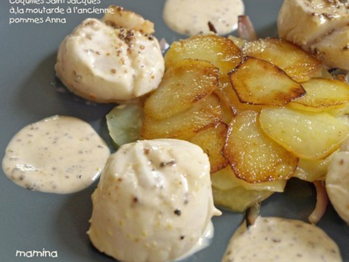 Coquilles saint jacques crémée à la moutarde à l'ancienne et pommes de terre anna