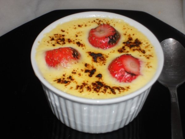 Creme catalane aux fraises Autrefacile18 min Envoyer cette recette à un ami Imprimer cette page Poser une question à l'auteur Publier votre photo de cette recette Ingrédients 4 INGREDIENTS POUR 4 PERS: préparation:15mn. cuisson:3mn. ~1/2 l de lait. ~4 jaunes d'oeufs. ~1 càs de maïzena. ~60 gr de sucre. ~40 gr de cassonade. ~1 càc de zeste de citron. ~150 gr de fraises. ou 125 gr de framboises).