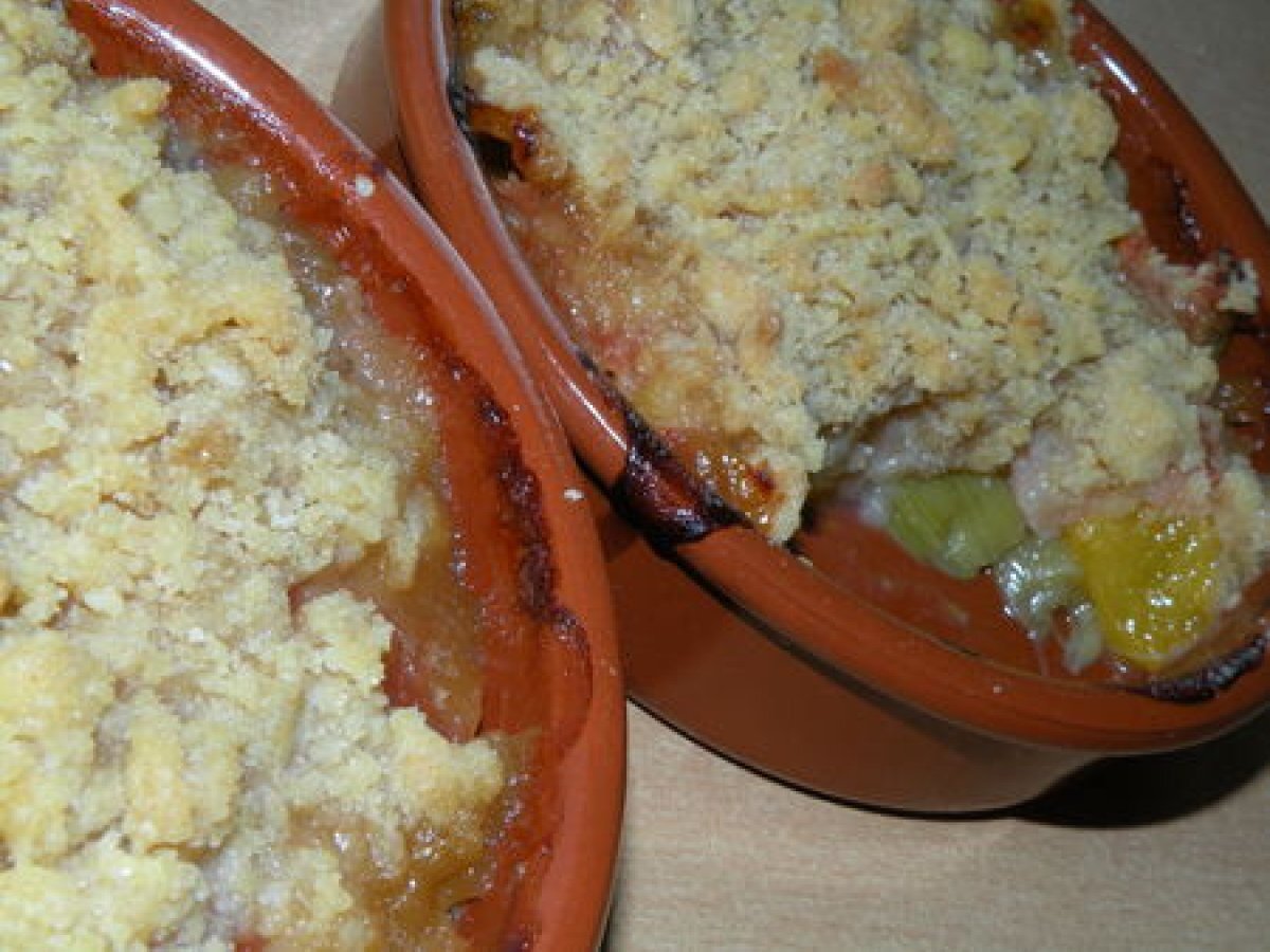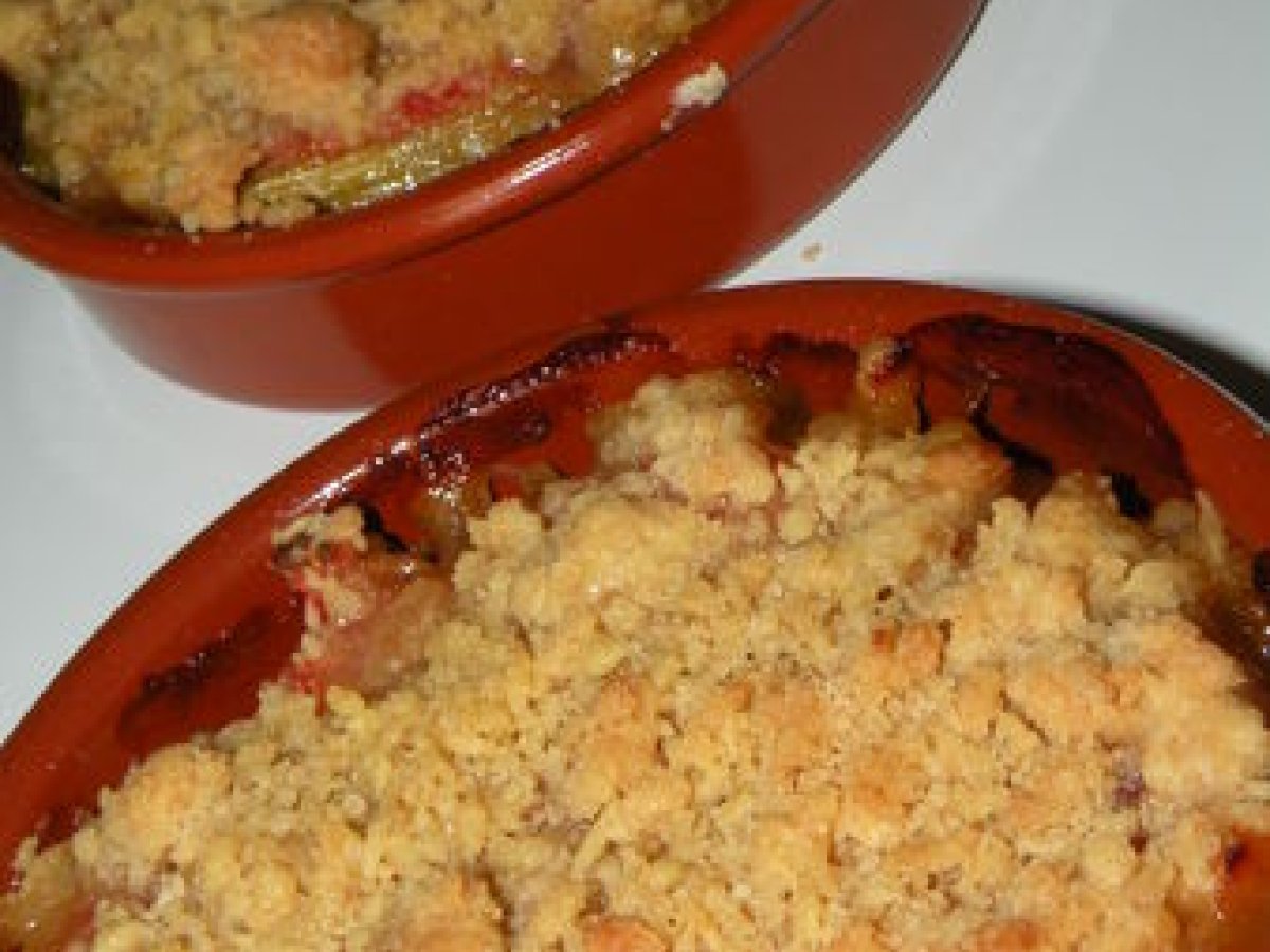Crumble rhubarbe - fraise - pêche PrécédentSuivant Autrefacile1 h 5 m1024 Kcal Envoyer cette recette à un ami Imprimer cette page Poser une question à l'auteur Publier votre photo de cette recette Ingrédients 3 2 pêches 350 g de rhubarbe 1 sachet de sucre vanillé 35 g de sucre 150 g de fraises 1 cuillère à soupe maïzena 1 tasse de farine 3/4 tasse de sucre brun 1/2 tasse de margarine 40 ml d'eau Coût estimé: 5.92Euros€ (1.97€/part)