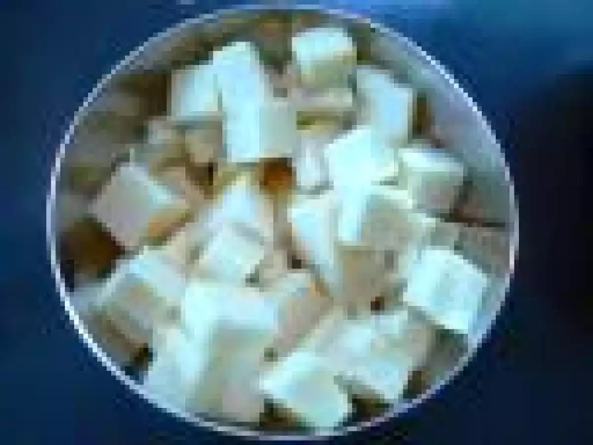 Cuire les cubes pendant environ 5 minutes. Les sortir et les égoutter avec du papier absorbant.