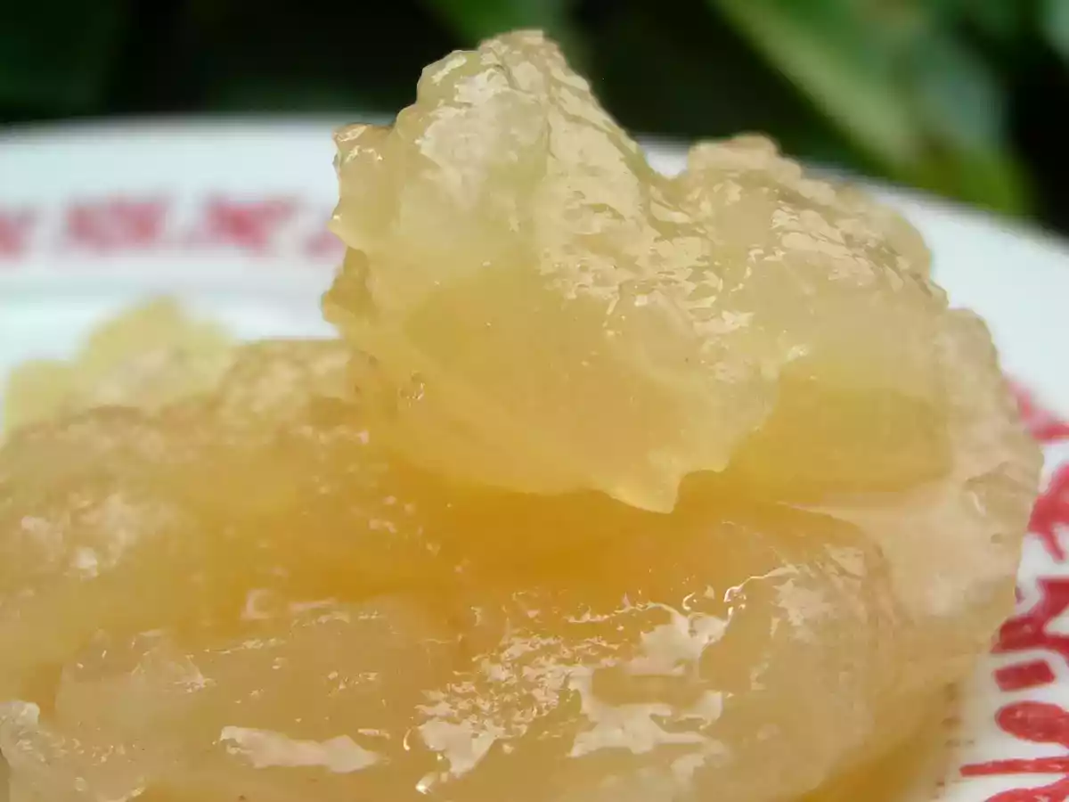 - Pesez le jus et ajoutez la moitié du poids en sucre. Mettez le tout dans une grande casserole, mélangez bien et portez le tout à ébullition, ajoutez l'agar agar, remuez bien et faites chauffer 1 minutes.