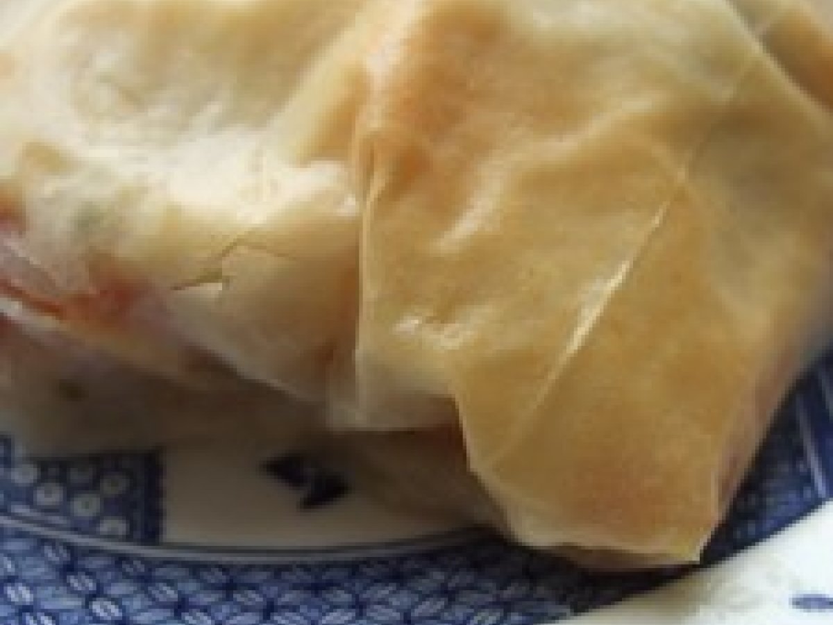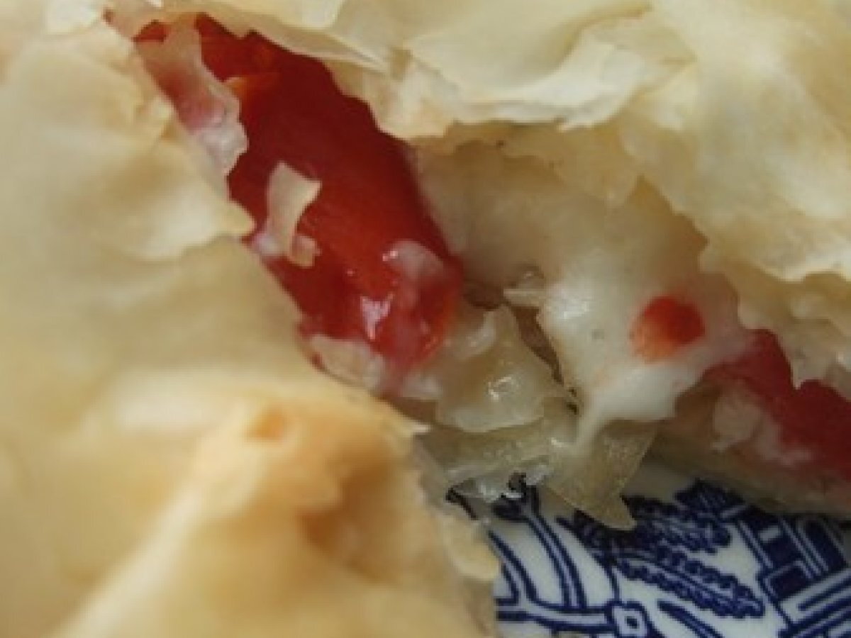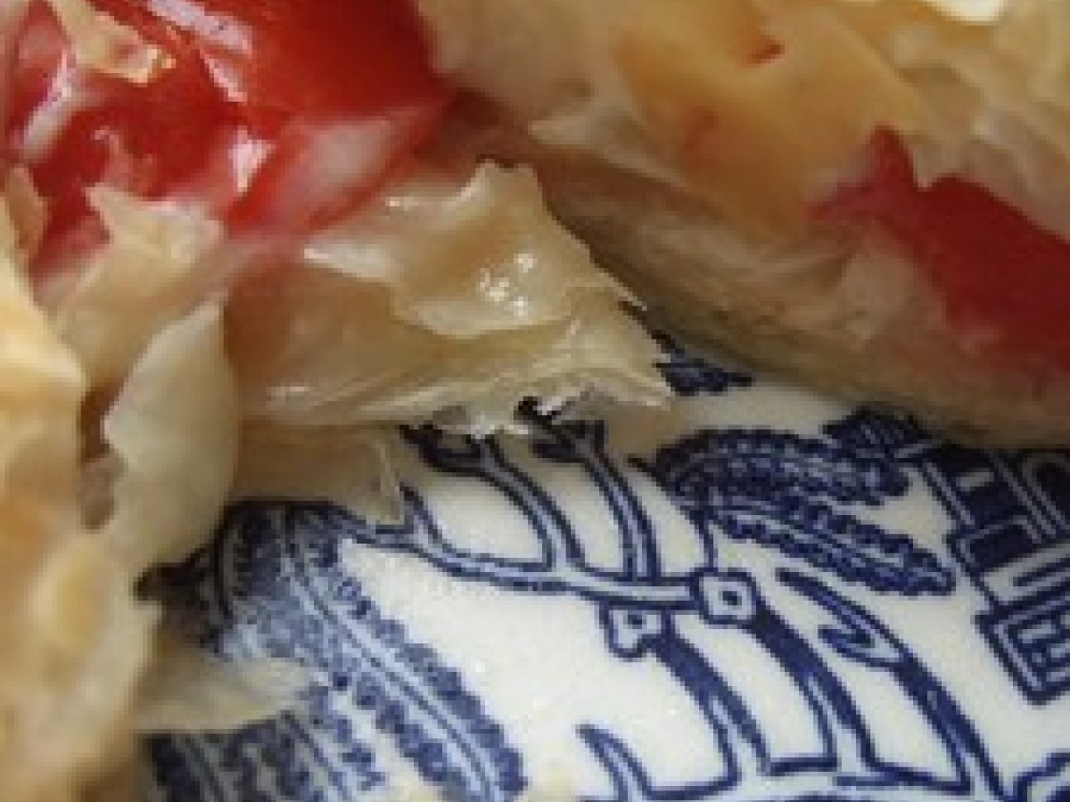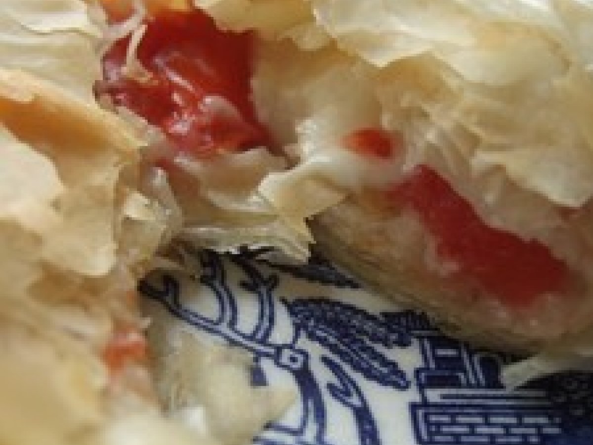Feuilletés de pâte filo à la tomate, au chèvre, thym et miel