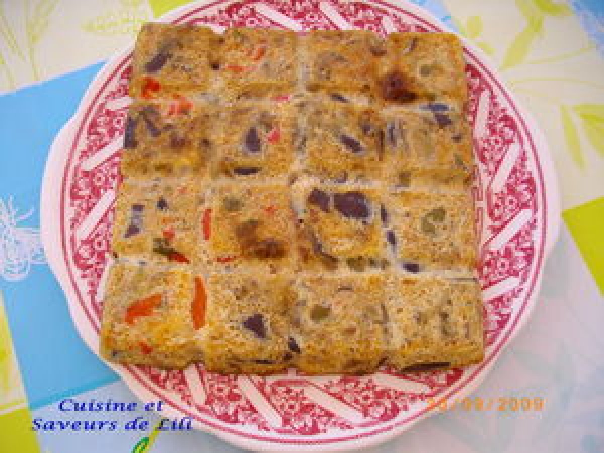 Flan aux aubergines et poivrons votez maintenant PrécédentSuivant Autrefacile1 h 10 m159 Kcal Envoyer cette recette à un ami Imprimer cette page Poser une question à l'auteur Publier votre photo de cette recette Ingrédients 4 600 g d'aubergines 1 poivron vert 1 poivron rouge 1 cuillère à soupe de thym 2 oeufs 20 cl de lait écrémé 1 cuillère à soupe d'huile d'olive Sel poivre