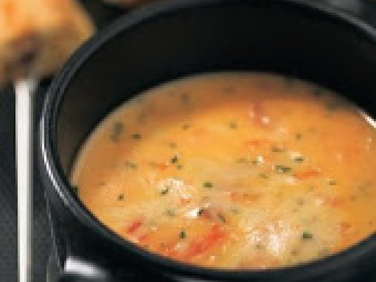 En avant-première, découvrez cette recette de fondue au fromage et à la tomate, extraite de Fondues, raclettes et plats flambés.