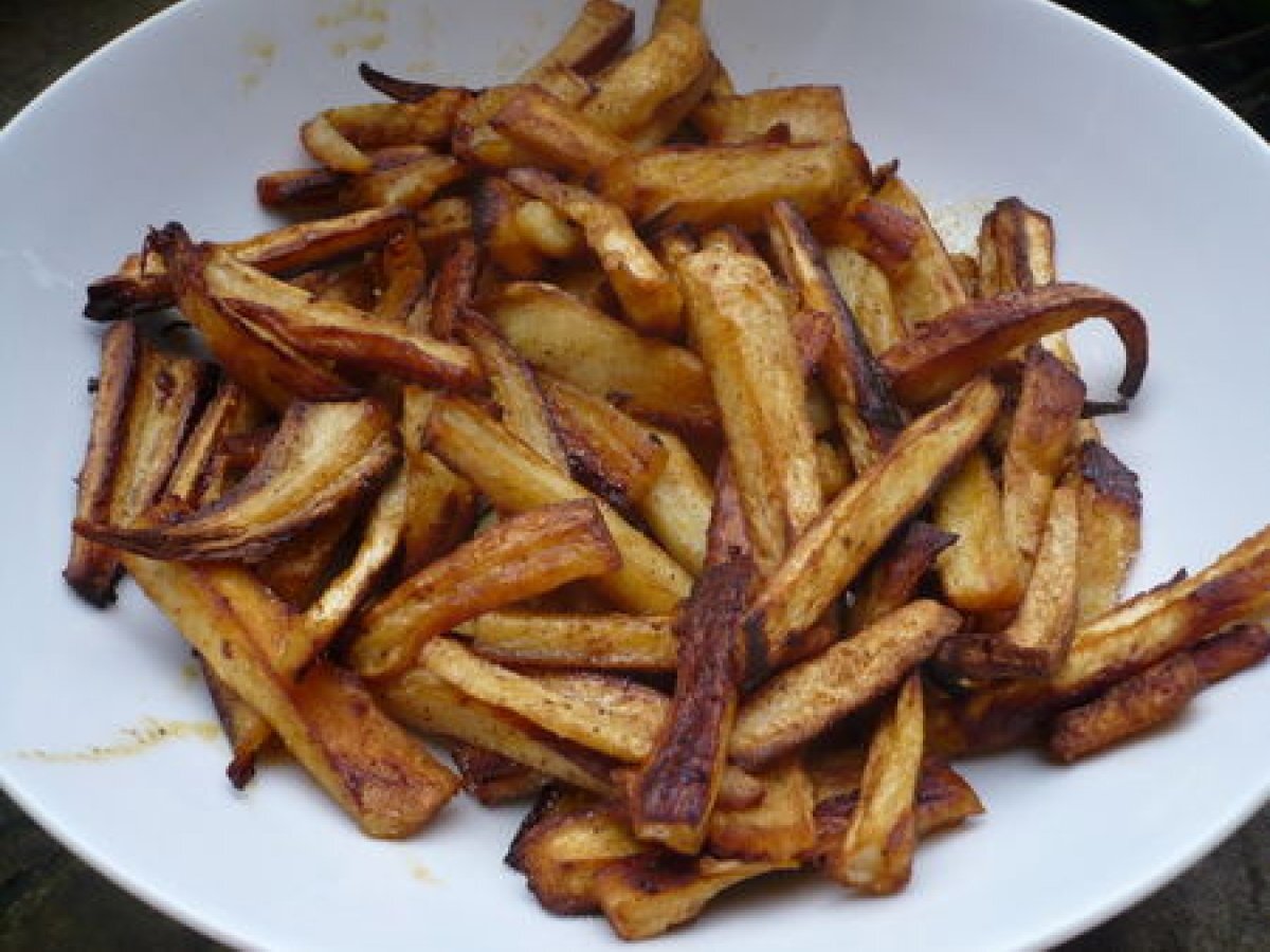 Ces frites ont un subtil arôme de bananes, un goût entre la patate douce et la carotte. Elles sont croustillantes, fondantes et celles qui sont légèrement caramélisées sont redoutables ! Elles sont parfaites en accompagnement de volailles ou de gibiers.