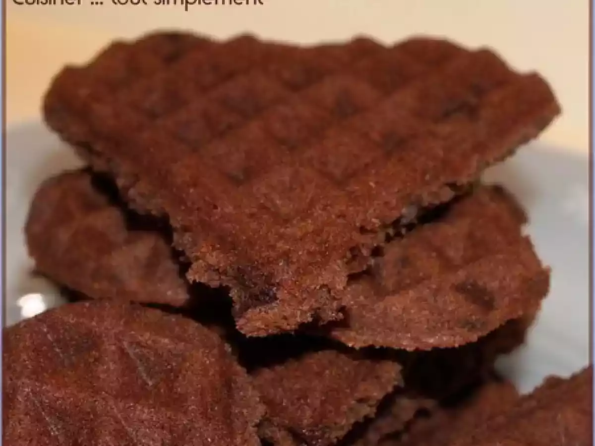 Gaufrettes 100% chocolat PrécédentSuivant Autrefacile16 min1191 Kcal Envoyer cette recette à un ami Imprimer cette page Poser une question à l'auteur Publier votre photo de cette recette Une pure gourmandise avec les pépites qui fonds en cuisant. Ingrédients 4 55g de cacao amer 50g de pépites de chocolat 250g de beurre salé 300g de sucre en poudre 260g de farine 4 oeufs 2 cuillères à soupe de lait 1 cuillère à soupe d'extrait de vanille Coût estimé: 4.36Euros€ (1.09€/part)