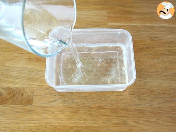 Faire tremper les feuilles de gélatine dans de l'eau froide.