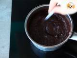 Mettre le reste des ingrédients (le sucre, l'eau, la crème liquide et le cacao en poudre) dans une casserole et mélanger le tout avec une cuillère. Ne mélangez pas au fouet, cela amènera des bulles d'air qui gâcheront l'effet miroir.