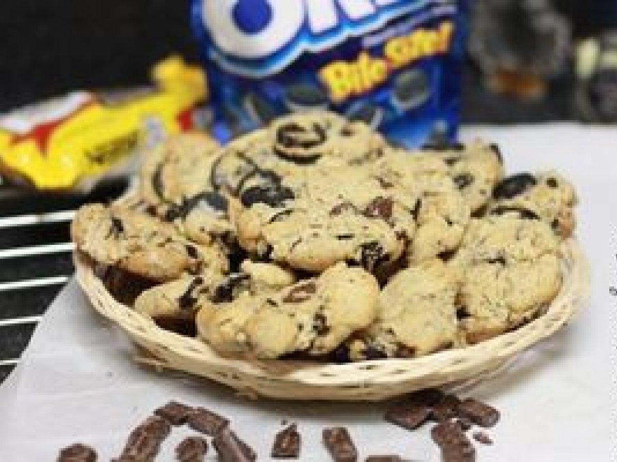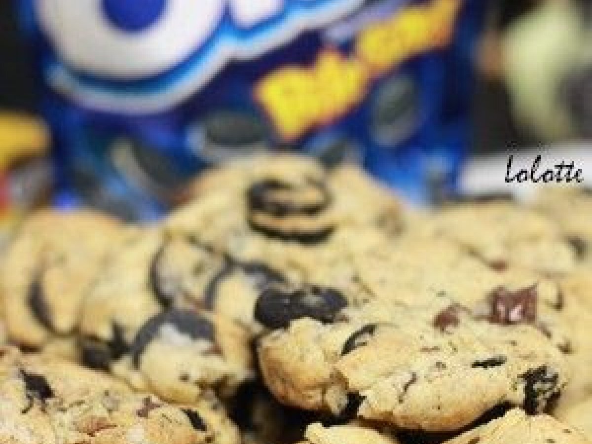 Gros cookies fondants aux brisures d?oreos, de chocolat et de noix,