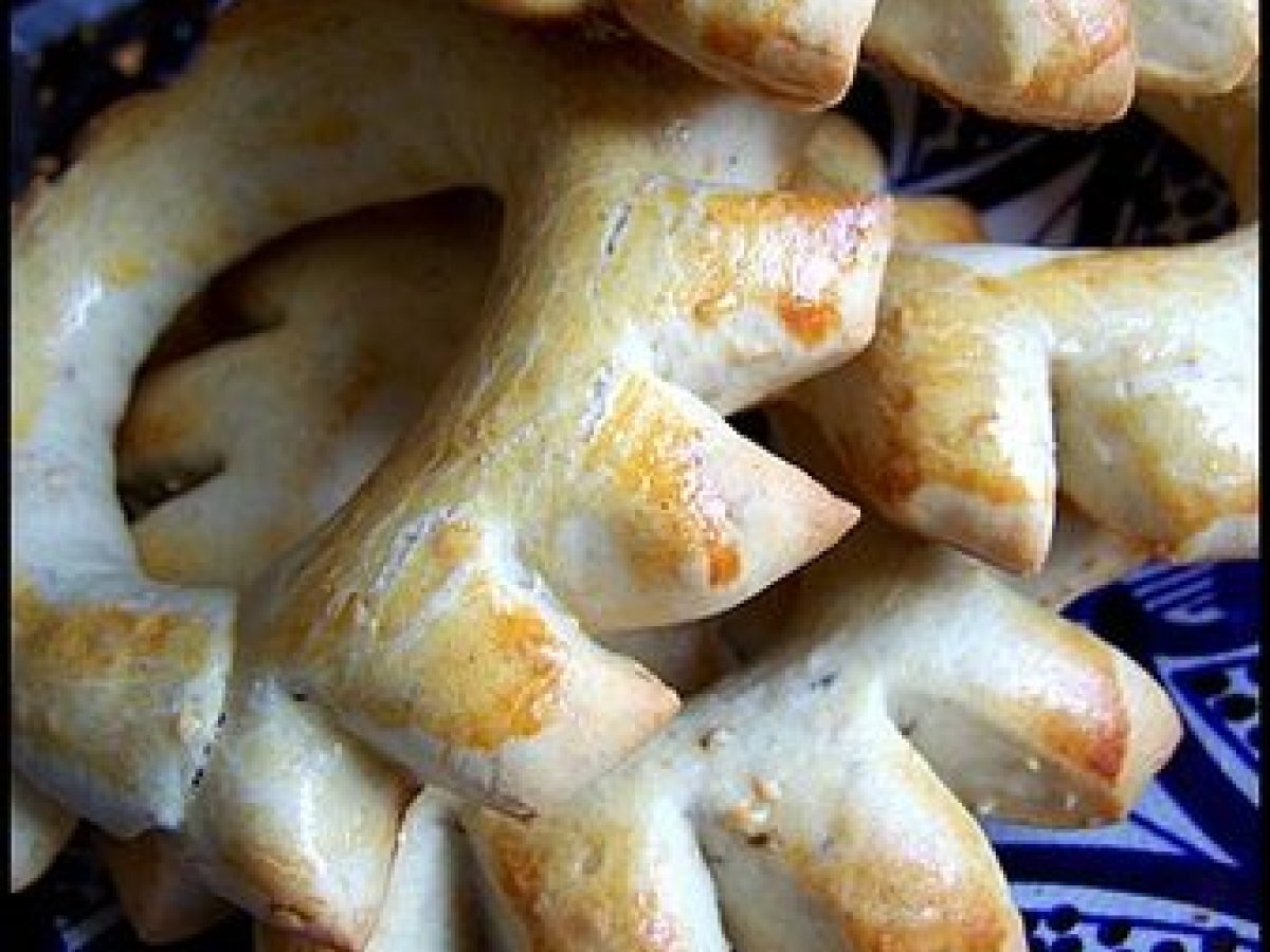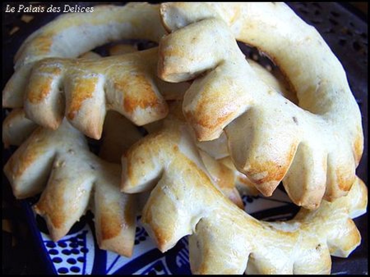 Les Kaak d'Oujda, bien connus de la pâtisserie marocaine, sont des biscuits sucrés en forme de soleil à base de levure boulangère et chimique parfumée délicatement d'anis ( parfois de fenouil moulu ), de graines de sésame dorées et de cardamome. On trouve bien entendue diverse façon de préparer ces fameux Kaak et de les agrémenter. Il existe même des versions plus modernes où jus d'orange voire limonade prennent leur place dans la confection de la pâte. Alors en voici une recette de ces recettes pour les pr