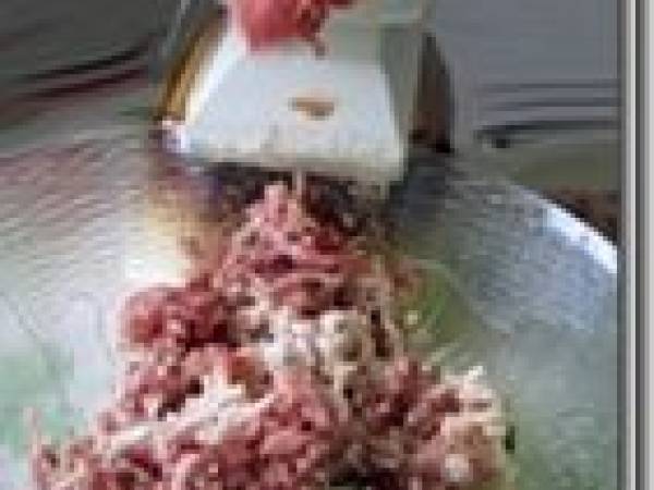 Égouttez la viande et passez-la au hachoir (gros trou) en réservant les filets et les foies.- Préchauffez le four à 210°C.