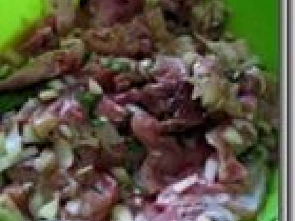 - Mélangez les ingrédients de la marinade avec la viande et laissez reposer au frais pendant 12 heures.