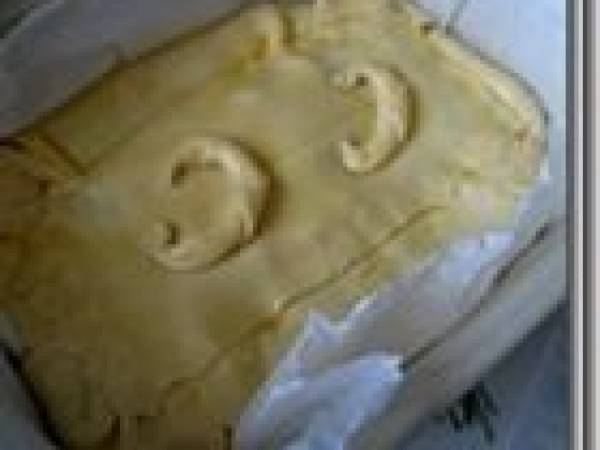 Garnir votre moule d' un premier rouleau de pâte et y déposez la farce en intercalant des morceaux de foies et de filets de lapin. Fermez avec le second roulant en soudant bien les bords. Décorez à votre convenance, faites une cheminée au milieu en utilisant un morceau de papier d' aluminium et dorez la pâte au jaune d' œuf dilué dans un peu d' eau.
