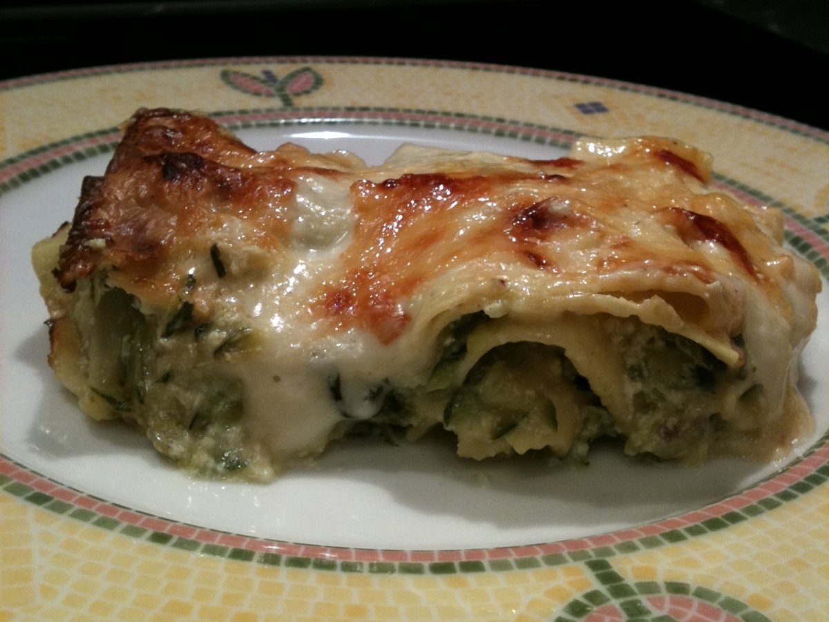 Lasagne aux courgettes et à la ricotta PrécédentSuivant Autremoyen1 h 10 m Envoyer cette recette à un ami Imprimer cette page Poser une question à l'auteur Publier votre photo de cette recette Ingrédients 8 pour les lasagnes : 6 plaques de lasagnes (fraîches c'est meilleur) 8 petites courgettes 1 pot de ricotta 100 g de lardons fumés 40 g de parmesan (frais, c'est meilleur) râpé 1 petit bouquet de basilic ciselé ou persil, coriandre, menthe ça c'est vous qui choisissez ! Huile d olive Sel et poivre et pour la béchamel : beurre farine lait mascarpone, c'est ma touche personnelle, à la place de la crème fromage râpé (du Gruyère...le vrai!, pas celui avec les trous, ça, c'est de l'Emmenthal et cela n'a pas de goût)