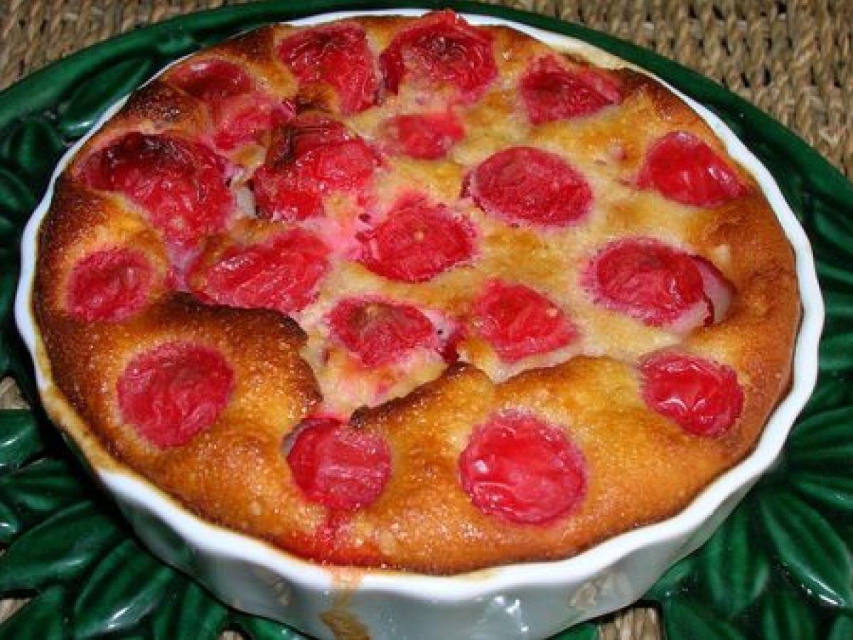 - Dans un moule beurré disposer les cerises et verser la pâte par dessus.