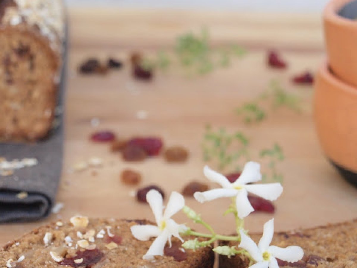 - Verser la pâte dans un moule à cake huilé et fariné. Parsemer de flocons de sarrasin.