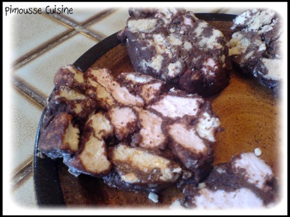 Le saucisson au chocolat guimauve et meringue sans beurre