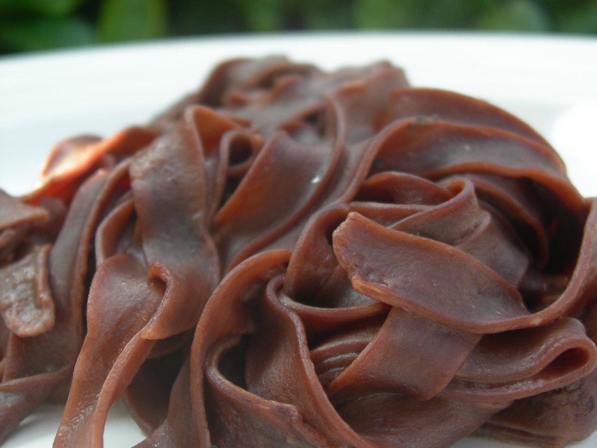 Les tagliatelles au chocolat faites maison,... votez maintenant Autrefacile35 min Envoyer cette recette à un ami Imprimer cette page Poser une question à l'auteur Publier votre photo de cette recette Ingrédients 2 100 g de farine 1 oeuf 5 cuillères à soupe de cacao un peu d'eau glace à la vanille copeaux de chocolat blanc baileys