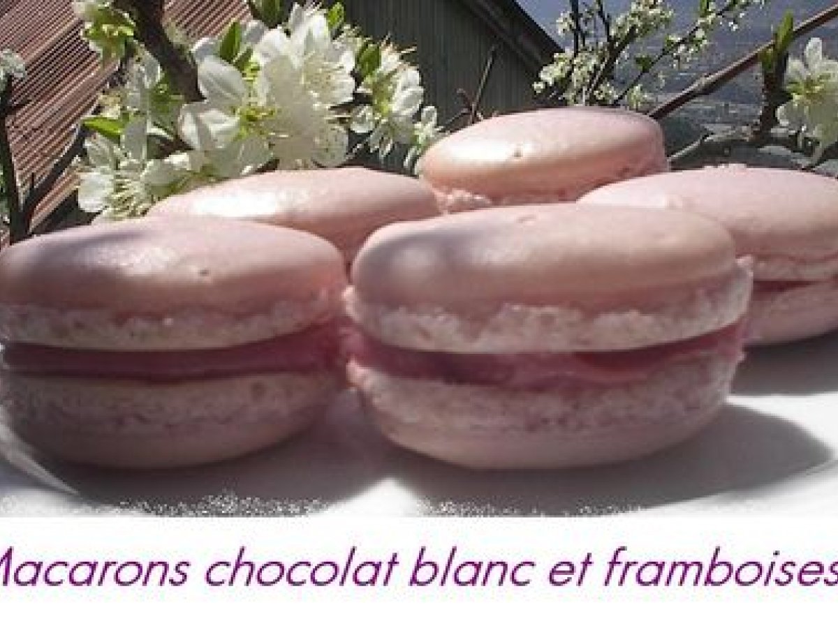 Macarons chocolat blanc et framboises Autrefacile35 min Envoyer cette recette à un ami Imprimer cette page Poser une question à l'auteur Publier votre photo de cette recette Ingrédients 4 Pour les coques : 110 g de blancs d'oeufs à température ambiante 60 g de sucre en poudre 1 pincée de sel 190 g de sucre glace 125 g de poudre d'amandes tamisée 2 gouttes de colorant bleu + 7 gouttes de colorant rouge Pour la ganache : 180 g de chocolat blanc (1 tablette Nestlé Dessert) - 85 g de crème fraiche liquide 75 g de gelée de framboise ou bien de coulis