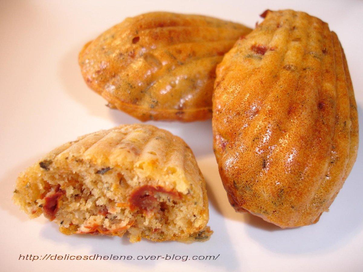 Madeleines aux tomates sechees et au thym Autrefacile35 min160 Kcal Envoyer cette recette à un ami Imprimer cette page Poser une question à l'auteur Publier votre photo de cette recette Ingrédients 8 Pour 16 madeleines : 2 oeufs 80 g de farine 1/2 sachet de levure chimique 4 cuillères à soupe d'huile d'olive 15 g de gruyère râpé 100 g de tomates séchées 1 cuillère à soupe de thym déshydraté sel et poivre Coût estimé: 2.04Euros€ (0.26€/part)