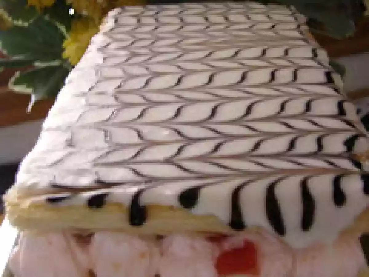 Milles feuilles aux fraises votez maintenant Autrefacile50 min Envoyer cette recette à un ami Imprimer cette page Poser une question à l'auteur Publier votre photo de cette recette Ingrédients 3 4 cuillères à café de maïzena 2 et 1/2 verre de lait de soja ou eau 4 jaunes d'oeufs 2 sachets de sucre vanillé 6 cuillères à soupe de sucre 50 g de beurre 500 ml de crème liquide (Rich) 1 rouleau de pâte feuilletée 1 verre de sucre glace un peu de crème liquide un peu de sirop de chocolat 500 g de fraise 2 cuillères à soupe de pudding à la fraise