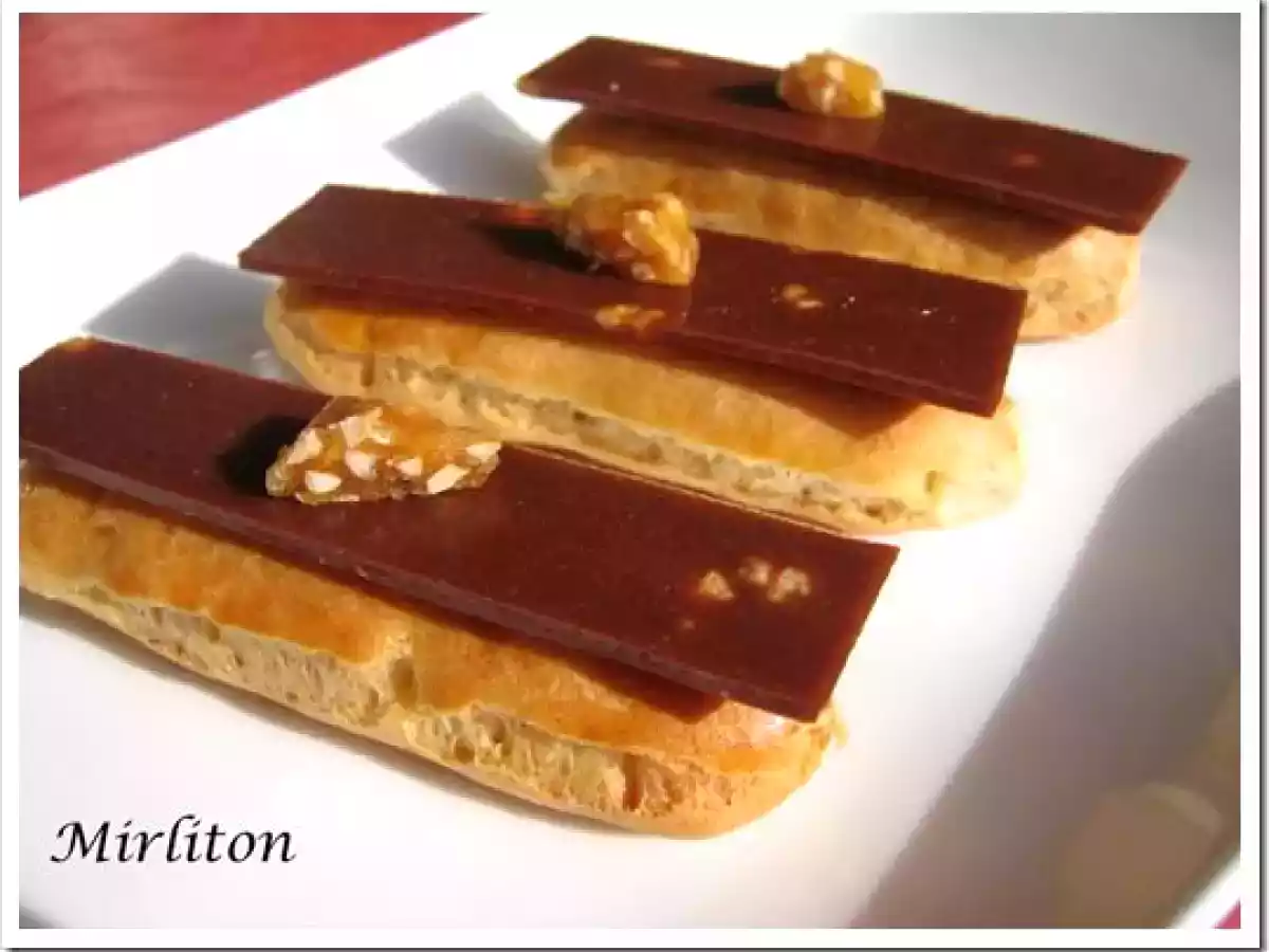 De vrais petites bombes ces petits éclairs! Le résultat a surpassé de loin des attentes. Un vrai régal de douceur et d' onctuosité!