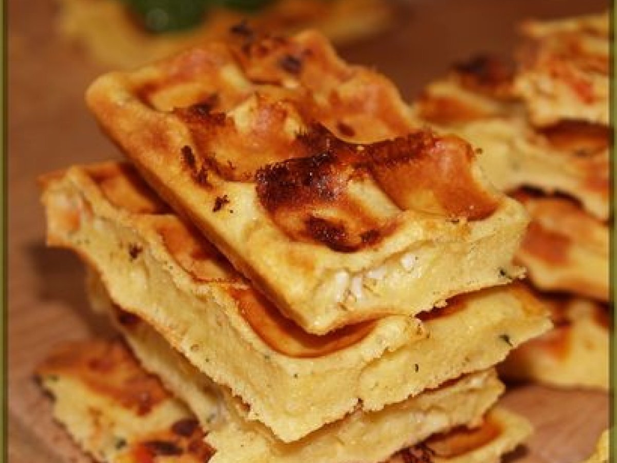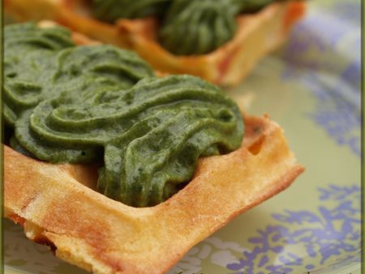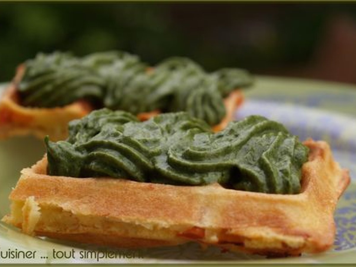 Minis gaufres tomate - féta - menthe accompagnées de mousse aux epinards