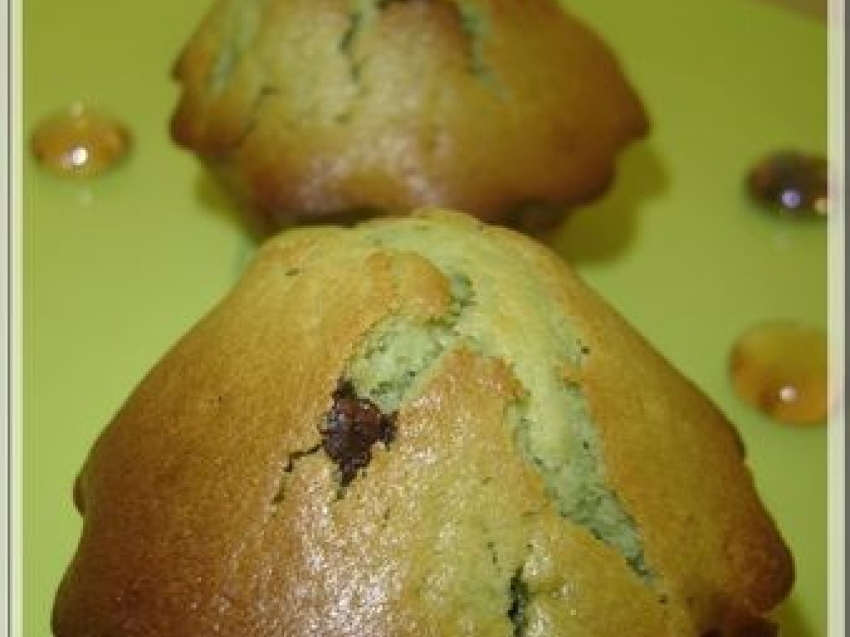 Muffins à la pistache et pépites de chocolat, coeur de poire