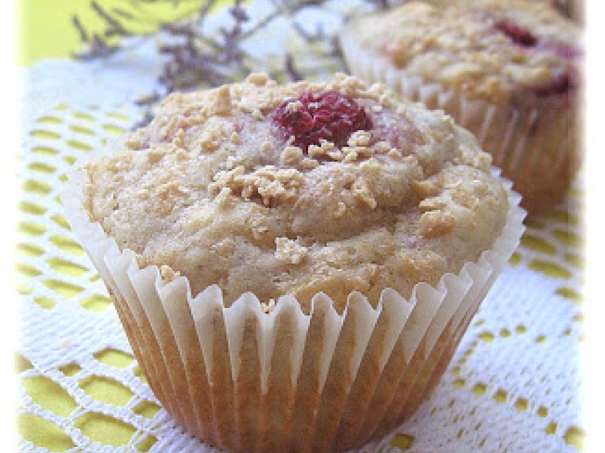 Muffins à la rhubarbe et aux framboises votez maintenant Autrefacile40 min633 Kcal Envoyer cette recette à un ami Imprimer cette page Poser une question à l'auteur Publier votre photo de cette recette Ingrédients 4 Pour 10 muffins : 1 1/2 tasse (180 gr) de farine tout-usage, non blanchie 1/2 tasse (80 gr) de flocons d'érable moulus finement 1 cuillère à soupe de poudre à pâte (levure chimique) 1/2 cuillère à thé de bicarbonate de soude 1/2 cuillère à thé de sel 3/4 tasse (180 ml) de babeurre** 1/3 tasse (80 ml) d'huile de canola 1 oeuf 1/2 tasse (65 g) framboises fraîches 1/2 tasse (60 g) de rhubarbe, pelée et coupée en brunoise (petits cubes)