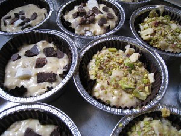Ces muffins sont aux chocolats blanc, lait et noir. Avec un peu de farine de blé dur ce qui fait qu'ils sont très savoureux. L'explosion volcanique de chocolat qui ravie les enfants!!