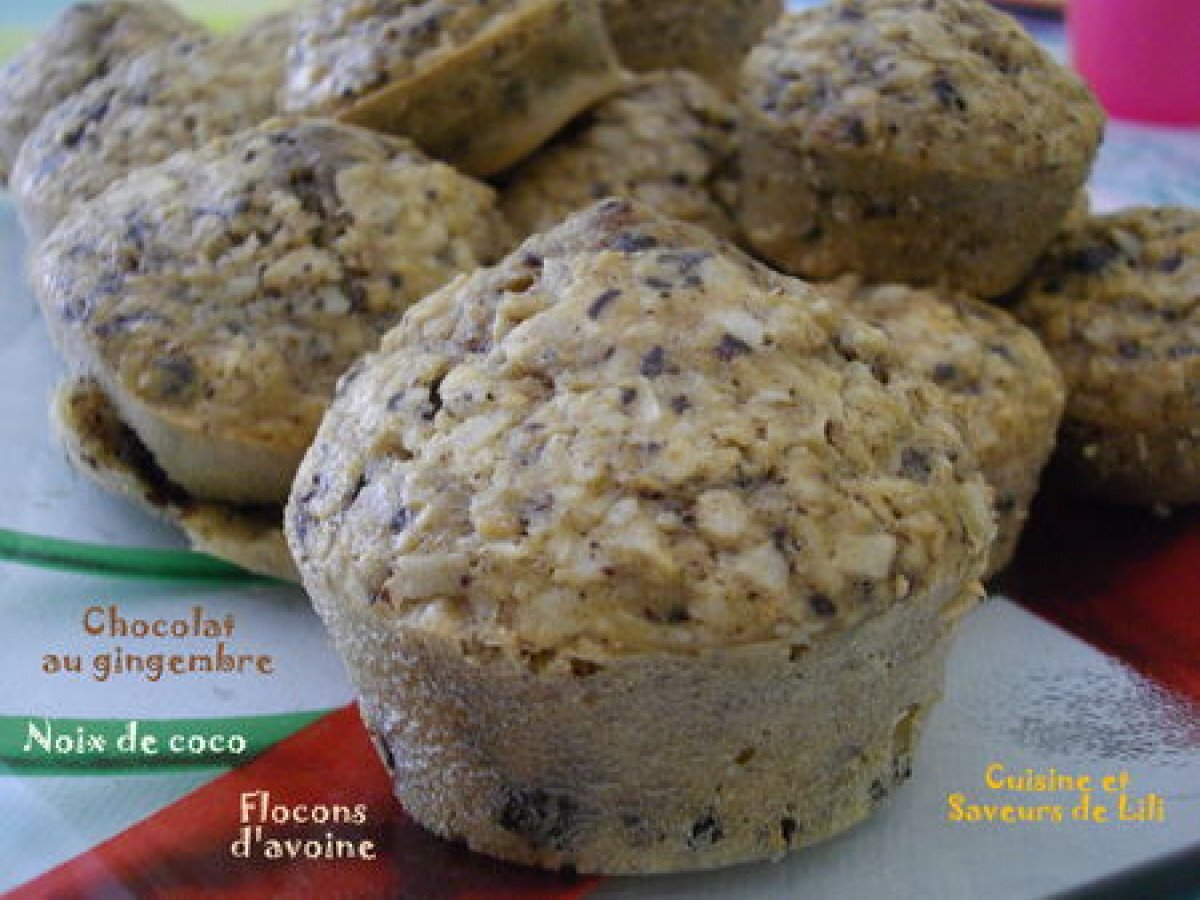Muffins aux flocons d'avoine, noix de coco et chocolat au gingembre
