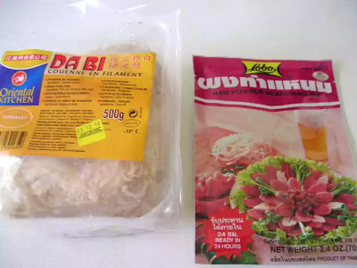 Nem chua PrécédentSuivant Autrefacile1 h 20 m Envoyer cette recette à un ami Imprimer cette page Poser une question à l'auteur Publier votre photo de cette recette Ingrédients 2 250 g de porc ( viande maigre ) 125 g de couenne de porc cuite 1 cuillère à café de sauce de poisson 2 cuillères à café de sucre 2 gousses d'ail 1 bonne pincée de poivre 1/2 cuillère à café de purée de piment 1/2 sachet de "nam powder seasonning mix"