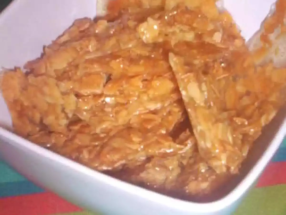 Nougatine aux amandes maison façon demarle... Autrefacile22 min Envoyer cette recette à un ami Imprimer cette page Poser une question à l'auteur Publier votre photo de cette recette Ingrédients 4 75g d'amandes effilées hachées 70g d'eau 100g de sucre 50g de glucose ou 150g de sucre 1 à 2 cuillères à soupe de jus de citron