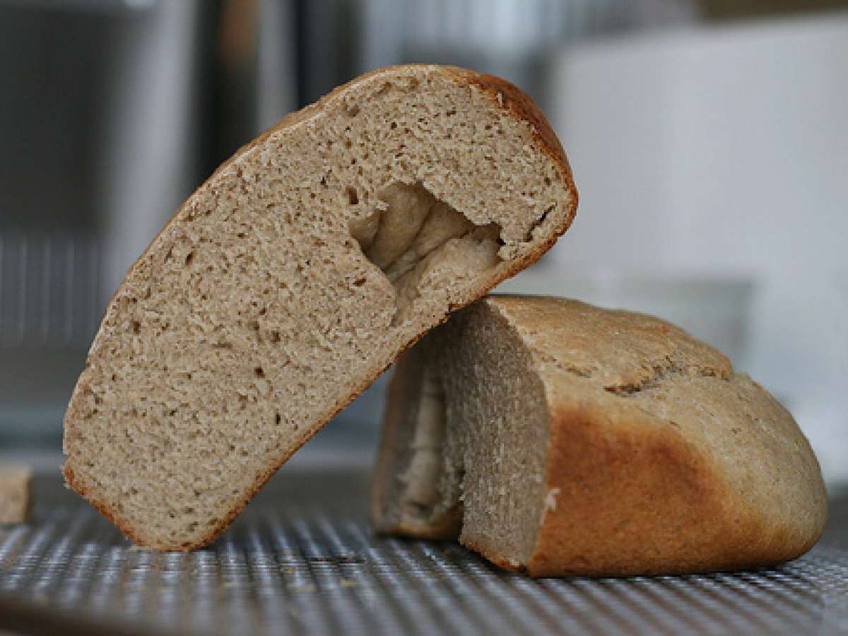 Ce qui est aimable c'est la consistance du pain pétrit à la main et surtout sa robe croquante. Et le pain en MAP ressemble beaucoup plus à celui que l'on trouve dans le commerce, un pain de seigle tout ce qu'il y a de plus "classique" mais très bon.