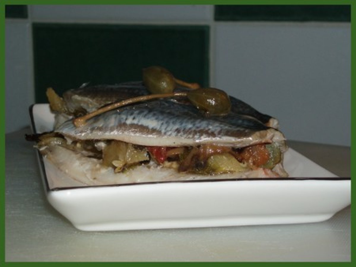 Papillote de sardines aux légumes confits à l'huile et aux câpres