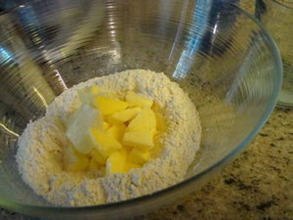 - Commencer à malaxer le beurre du bout des doigts pour écraser les morceaux.