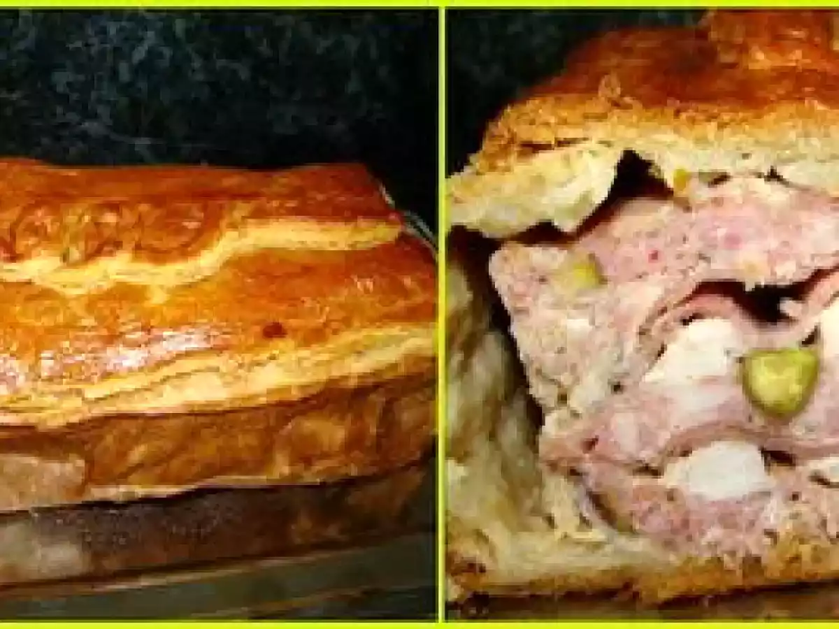Paté en croûte rapide PrécédentSuivant Autrefacile1 h 35 m Envoyer cette recette à un ami Imprimer cette page Poser une question à l'auteur Publier votre photo de cette recette Ingrédients 6 1 bloc de pâte feuilletée 2 escalopes de poulet 3 tranches de jambon blanc 3 tranches de jambon cru 250 à 300g de chair à saucisses 1 oeuf 1 petit morceau de poivron rouge 1 pincée de 4 épices 6 g de sel Poivre quelques pistaches