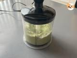 Mixez à puissance maximale à l'aide d'un mixeur jusqu'à obtenir un mélange crémeux et homogène.