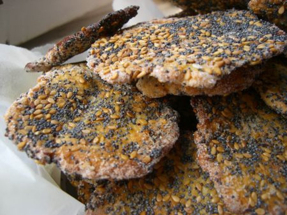 Petits biscuits oarnge- pavot- sésame Autrefacile35 min Envoyer cette recette à un ami Imprimer cette page Poser une question à l'auteur Publier votre photo de cette recette Ingrédients 4 360 g de farine 100 g d'amandes en poudre 160 g de beurre salé 160 g de sucre 60 g de cassonade brune + 1 sachet de sucre vanillé et le reste en sucre blanc pour faire 160 g en tout 8 jaunes d'oeufs zeste + jus d'1 orange non-traitée 1 belle poignée de graines de pavot + 1 autre de sésame