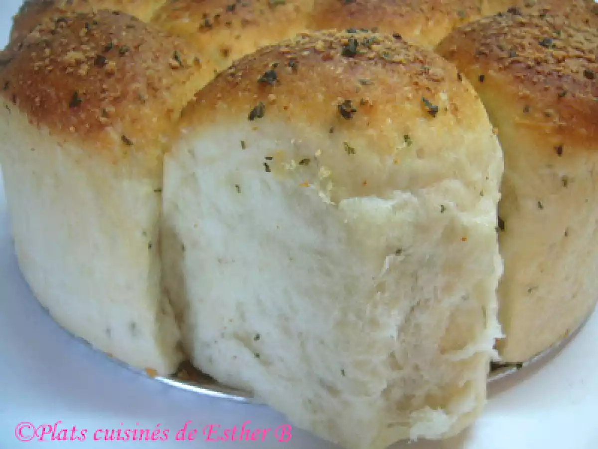 Petits pains à l'ail et au parmesan (map) PrécédentSuivant Autrefacile35 min865 Kcal Envoyer cette recette à un ami Imprimer cette page Poser une question à l'auteur Publier votre photo de cette recette Ingrédients 4 1 tasse (250 ml) d'eau 3 tasses (360 gr) de farine tout-usage 1 1/2 cuillères à thé sel 1 1/2 cuillères à soupe de beurre ou margarine 3 cuillères à soupe de sucre 1 cuillère à thé persil 2 cuillères à soupe de lait en poudre 2 cuillères à thé de levure pour machine a pain Garniture: 1/4 tasse (60 g) de beurre fondu 1 gousse d'ail hachée 2 cuillères à soupe de parmesan râpé 1 cuillère à soupe persil Coût estimé: 2.01Euros€ (0.5€/part)