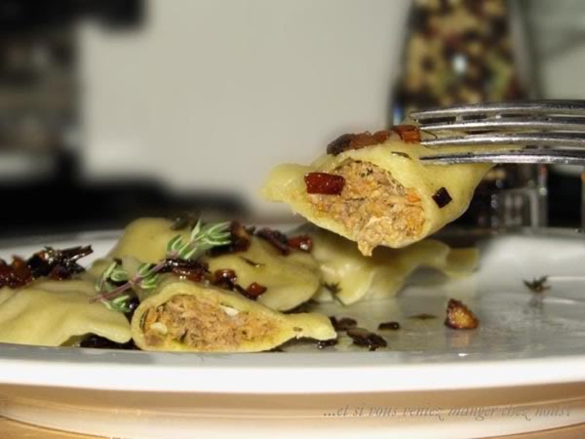 Mélanger tous les ingrédients. Pétrir la pâte pendant une dizaine de minutes. La pâte est prête dès qu'elle est élastique et elle a un aspect lisse. La faire reposer dans un saladier couvert d'un filme alimentaire pendant 20 minutes environ. - Pour la farce: